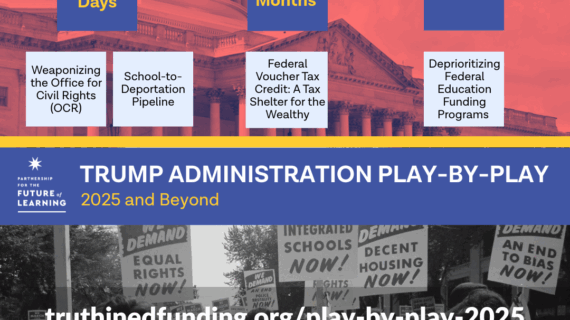 Read the NewsletterThe Trump Administration Play-By-Play guide is now updated with new information and resources on administration priorities — such as the school-to-deportation pipeline, federal voucher tax credit, and deprioritizing federal education funding programs.